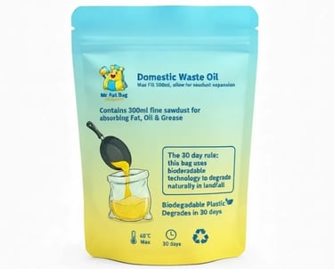 Made from natural materials, the pouch breaks down harmlessly after use. Instead of storing waste oil, in glass or plastic containers, the pouch can be added to your food waste bin. Local councils can then choose to burn the food waste for electricity, reducing harmful Methane gas from entering the atmosphere.